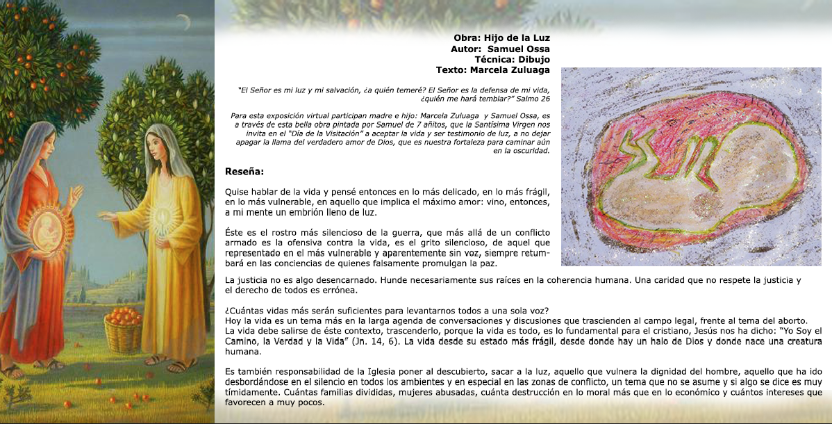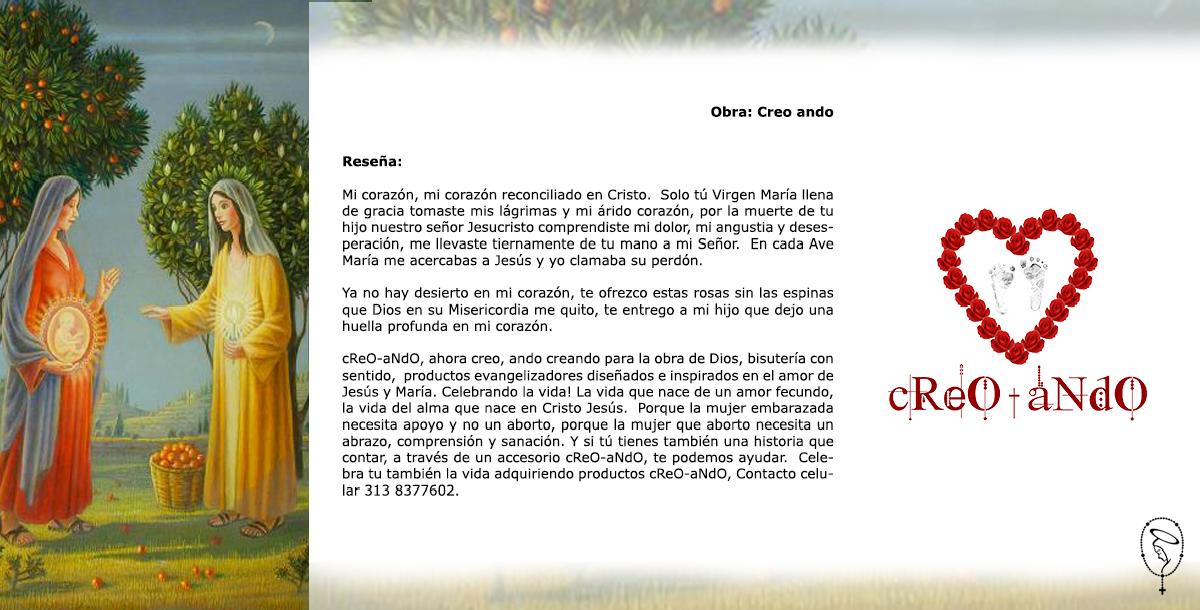 Este espacio artístico es para evangelizar a través de la web y las redes sociales con esta bella muestra que agrupa todas las obras recibidas, para que sea la Santísima Virgen María quien nos visite no sólo de manera virtual, sino que a través de la contemplación y el asombro podamos generar un encuentro con Jesucristo por medio de su madre.