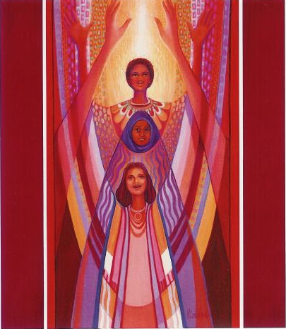 1 – La hermana de San José, María Southard explica que el arte es su “lengua materna”: “Con amor, con gracia, la pasión,y la visión surgen en mí, fluyen a través de mí y lo entrego como un regalo para el mundo”. La pintura “Mujer con gran espíritu” capta lo que la hermana María ve como un momento de promesa en el mundo, mientras el espíritu humano se mueve de “dominación patriarcal, separación, competencia y miedo” hacia una “mayor plenitud como nuestra sabiduría femenina, con capacidad para la inclusión, el amor, la compasión, la colaboración y la comunión “.