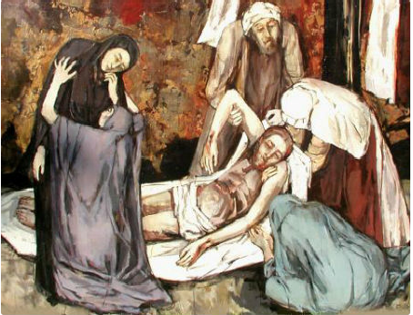 3 – Para Roxolana Luczakowsky Armstrong, pintar con inspiración religiosa es una forma de oración: “Yo trato de ponerme en el lugar de los hechos históricos para comprender su significado. Es lo que San Ignacio de Loyola, llamó Compositio loci. En esta pintura “Descendimiento de la Cruz”, hay ecos de las “Pietas” de artistas del pasado, pero no copiados conscientemente”. Ver más de la obra del artista en www.agdei.com/Roxolana.html