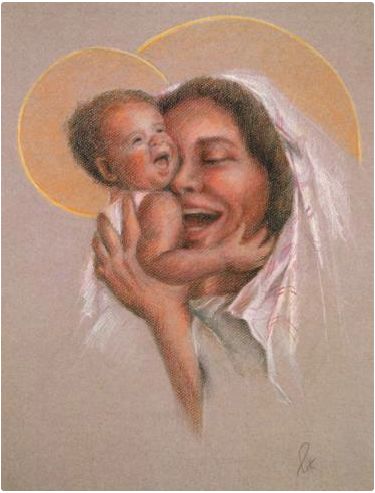 12 – “María y Jesús”: Susan Ogilvie ve el hoy como “un tiempo maravilloso para ser católico y un artista de la mujer, creando arte sagrado”. Ogilvie dice que la pintura refleja su “tierna crianza, y una sensibilidad femenina a los colores, inspirada en el llamado del Beato Juan Pablo II a los artistas en el nuevo milenio para evangelizar a través del nuevo arte sagrado”.