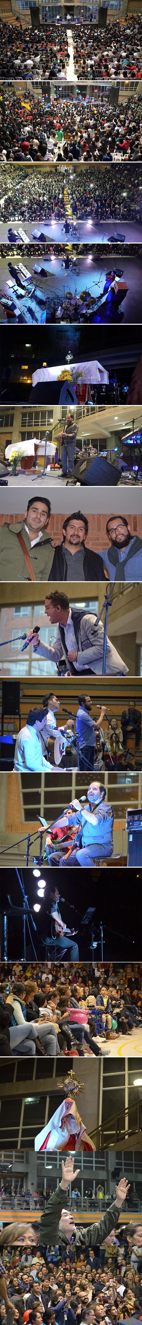 El encuentro se inició a las 5:30 p.m. y la cuota colombiana estuvo representada por Camilo Arana quien interpretó su reconocido tema provida “Deja decirte mamá” y el grupo bogotano Unión 3, conformado por Andrés Calderón, Javier Bernal y Andrés “Mota” Malagón, quienes dieron inicio a esta gran celebración con cantos como “Abre mi Corazón”, “Gracias Señor” y “Nadie como tú”.