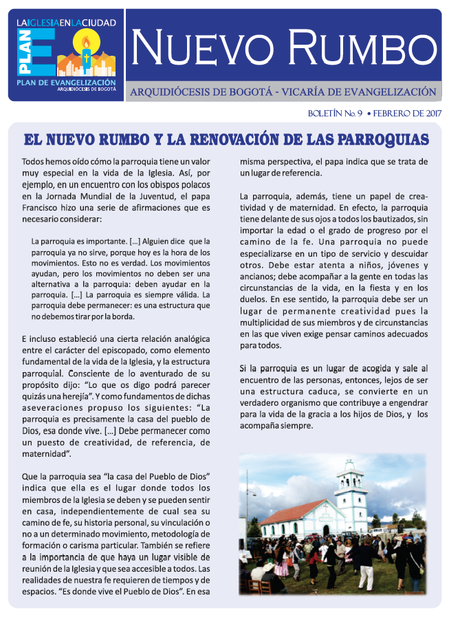 Por eso, para alcanzar estas metas propuestas se han diseñado espacios de oración, reflexión, formación y participación en torno al Plan de Evangelización con el propósito de conocer, comprender y acoger este proyecto de vida arquidiocesano y de iniciar un proceso de revisión crítica de nuestra práctica evangelizadora. Estos espacios están dirigidos a toda la comunidad arquidiocesana, especialmente a los animadores de evangelización. En este boletín encontrarán la información detallada de estas actividades.