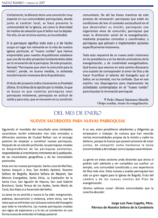 Oficina Vicaría de Evangelización. Llámanos 350 55 11. Ext: 1105 o escríbenos: sec_evangelizacion@arquibogota.org.co
