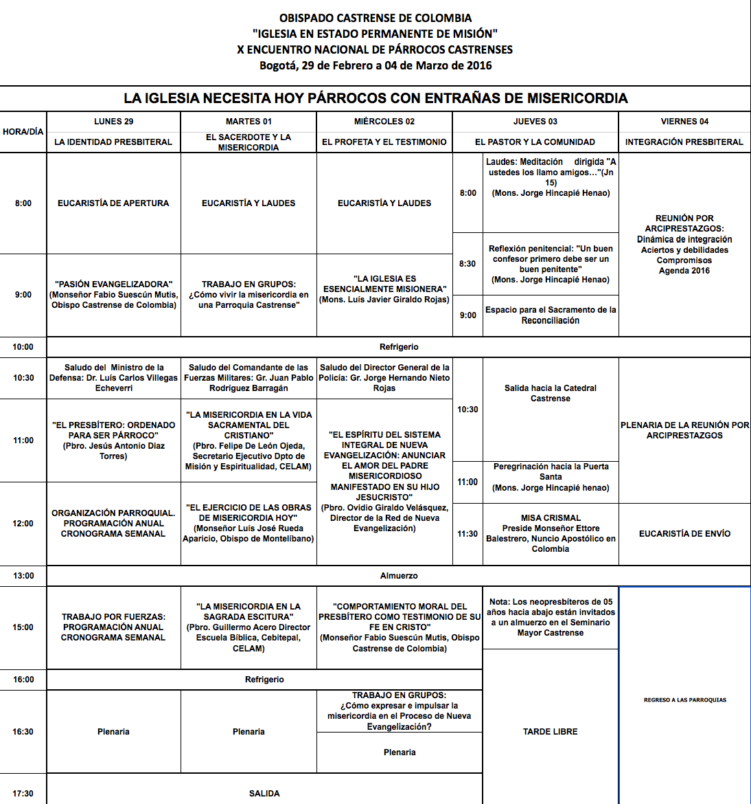 Comenzó el X encuentro de párrocos del clero castrense colombiano