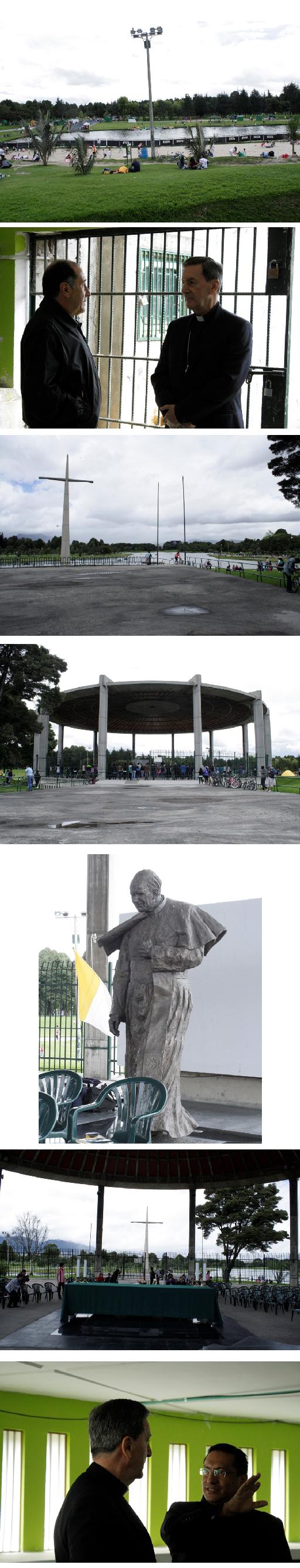 El mismo lugar que recibió a Pablo VI, que se engalanó para recibir la visita de Juan Pablo II, el Grande, que fue constituido por el eminentísimo señor cardenal Rubén Salazar Gómez, arzobispo de Bogotá y presidente del Celam, como centro de pastoral “vinculo de amor”, el 19 de junio de 2019 en una ceremonia solemne, que posee en su recinto dos esculturas en bronce de casi 3 metros de altura de la artista Julia Merizalde, en homenaje a Pablo VI y Juan Pablo II, que congrega cada domingo para la ciclo misa a las 11 de la mañana a más de 400 personas, que es testigo de cuanto evento religioso y laico que se realiza en el parque, será nuevamente el primer espectador de la presencia de Cristo en cabeza de un Papa a esta nación y ciudad necesitadas de palabras de esperanza, de alegría y paz.