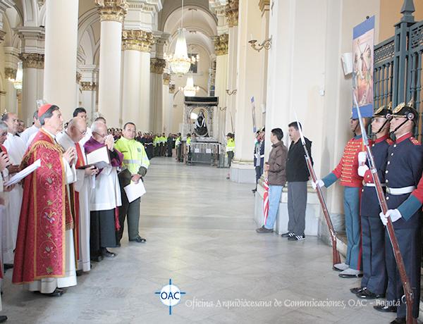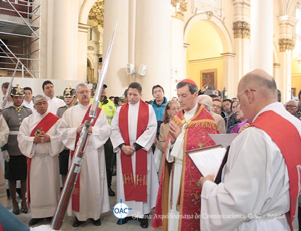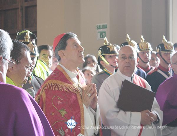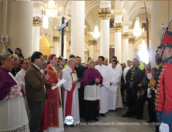Con una gran participación de la comunidad entre fieles y peregrinos se realizó este sentido y significativo Vía Crucis adaptado a la “Pasión” que se vive en nuestro País, meditado y recorrido al interior del Templo, con las reflexiones escritas por monseñor Jorge Alberto Ayala López, párroco de la Catedral Primada de Colombia; el cual fue introducido, desarrollado en algunos apartes y concluído con algunos mensajes del papa Francisco en su carta Evangelii Gaudium.