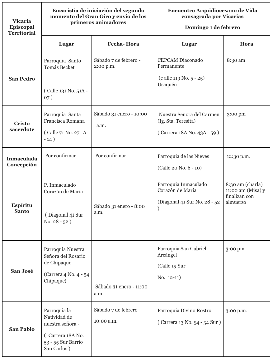 El próximo fin de semana y durante el mes de febrero tendremos nuestras Eucaristías vicariales de iniciación del segundo momento del Gran Giro y envío de los primeros…