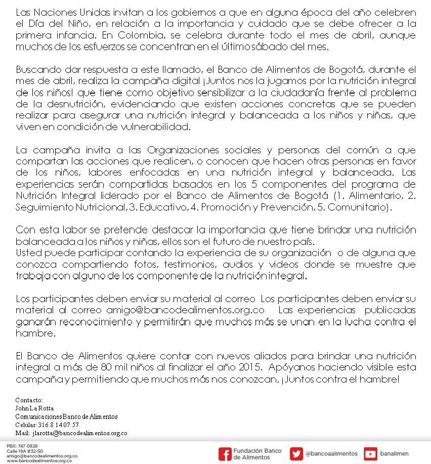 ¡Juntos nos la jugamos por la nutrición integral de los niños!