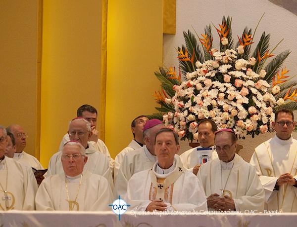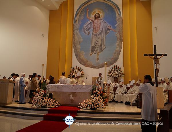 La ceremonia del juramento fue corta: Monseñor, de rodillas ante el Sagrario, pronunció el Credo y el juramento como nuevo obispo, en presencia del señor Nuncio. Entonces empezó la procesión de entrada, imponente: más de 400 concelebrantes entre obispos, presbíteros y diáconos de todas las diócesis de la Bogotá metropolitana.