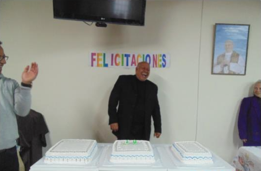 Y la celebración mundana, felicitaciones, abrazos, tarjetas, mensajes escritos y en video, todo con el mayor cariño y admiración por nuestro párroco.