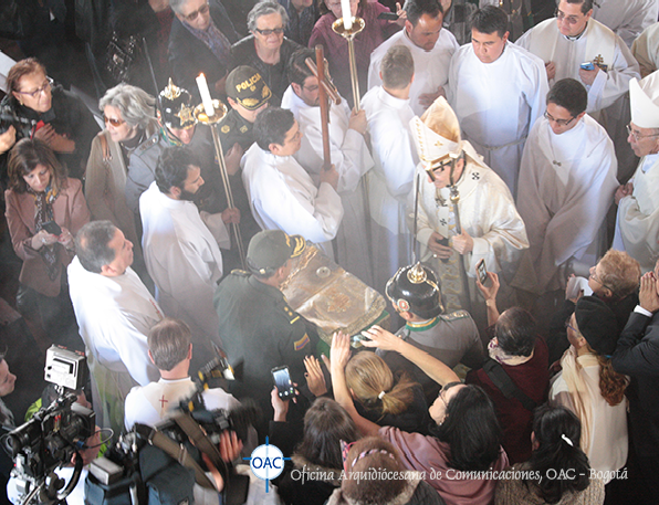 El cardenal se refirió a que por segunda vez en un tiempo relativamente corto, Colombia tiene la gracia de recibir la reliquia de San Juan Pablo II, la primera vez era el beato Juan Pablo, ahora lo veneramos como santo, ejemplo a imitar y como intercesor para alcanzar la gracia de la salvación.
