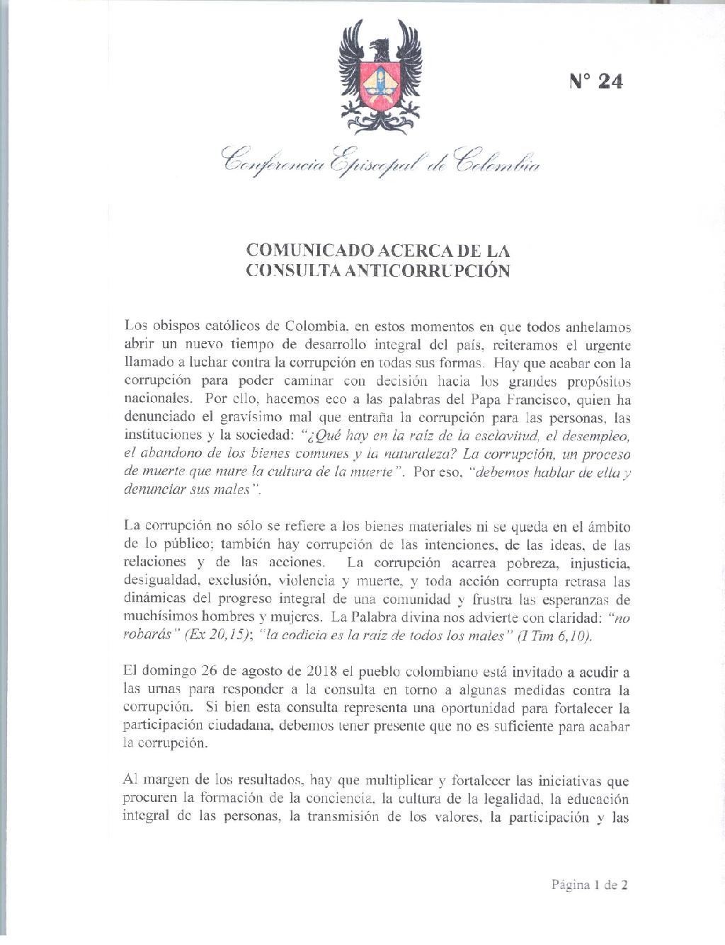Los obispos católicos del país hacen un llamado a todos los colombianos a luchar contra la corrupción en todas sus formas. Así lo manifestaron, a través de un comunicado…