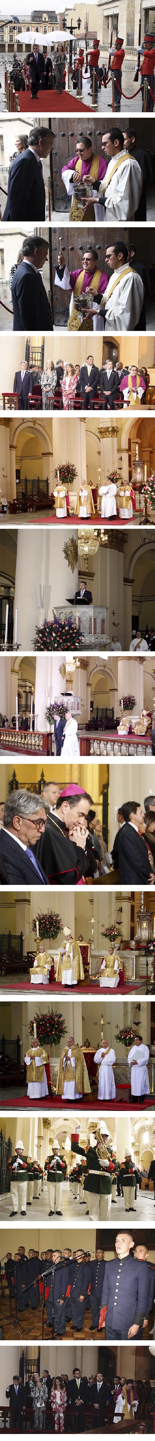 Con una mañana fría y lluviosa a las 8:30 a.m. el Presidente de la República, Juan Manuel Santos Calderón acompañado de su esposa, María Clemencia Rodríguez y sus hijos, ingresaron a la Catedral Primada de Colombia donde fueron recibidos y bendecidos con el sacramental del agua bendita, por el párroco; Monseñor Álvaro Vidales Bedoya , el diácono Fredy Galvis y el capellán del batallón Guardia Presidencial, José Arnoldo Rincón.