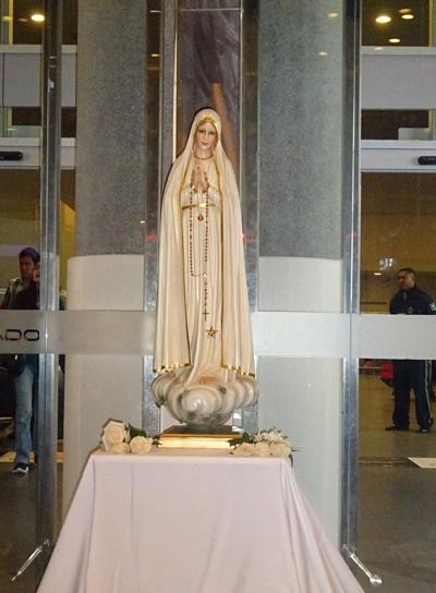 Custodiada por los jóvenes de la campaña: Colombia necesita de Fátima, Luis Fernando Escobar Duque, director del comité organizador, informó para Caracol Televisión y El Catolicismo, que Nuestra Señora de Fátima ha visitado más de 100 países y ha llegado a Colombia a darnos esperanza y a invitarnos para recibir su amor maternal “Ella nos ha dado la solución rezar el Santo Rosario”.