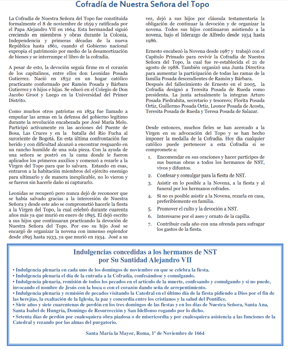Haz click aquí para ver la programación de la novena a Nuestra Señora del Topo en la catedral primada de Colombia