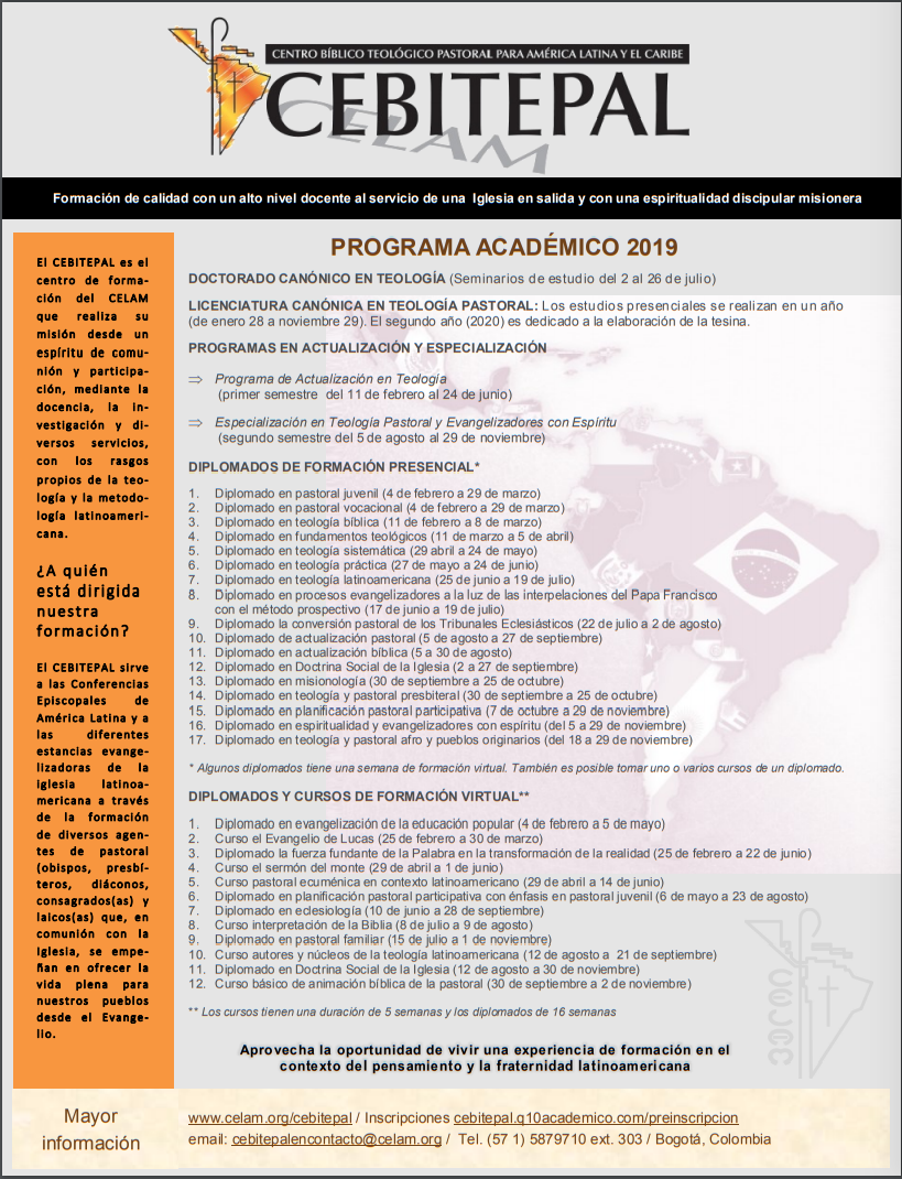 El CEBITEPAL es el centro de formación del CELAM que realiza su misión desde un espíritu de comunión y participación, mediante la docencia, la investigación y diversos…