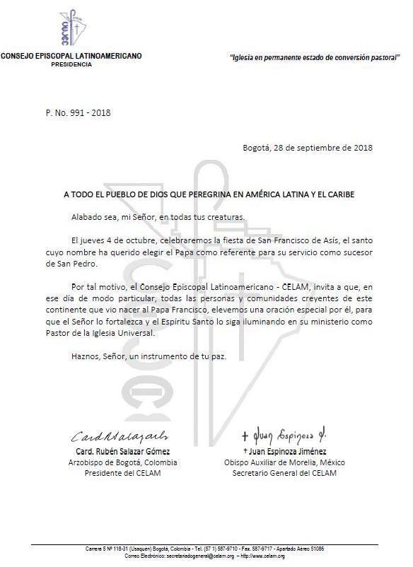 Por medio de un comunicado firmado por el señor cardenal Rubén Salazar Gómez arzobispo de Bogotá, primado de Colombia y presidente del CELAM y monseñor Juan Espinoza…