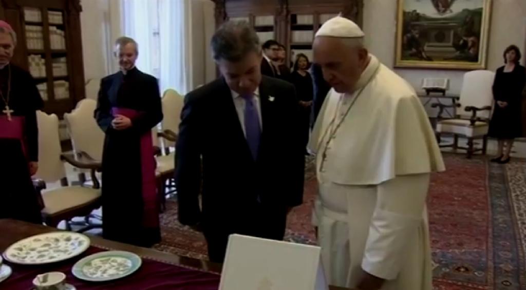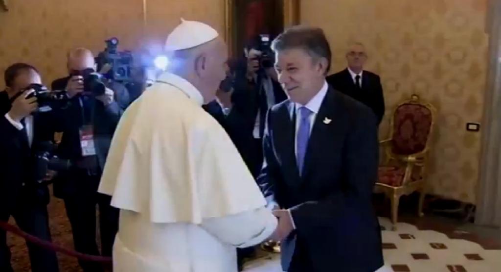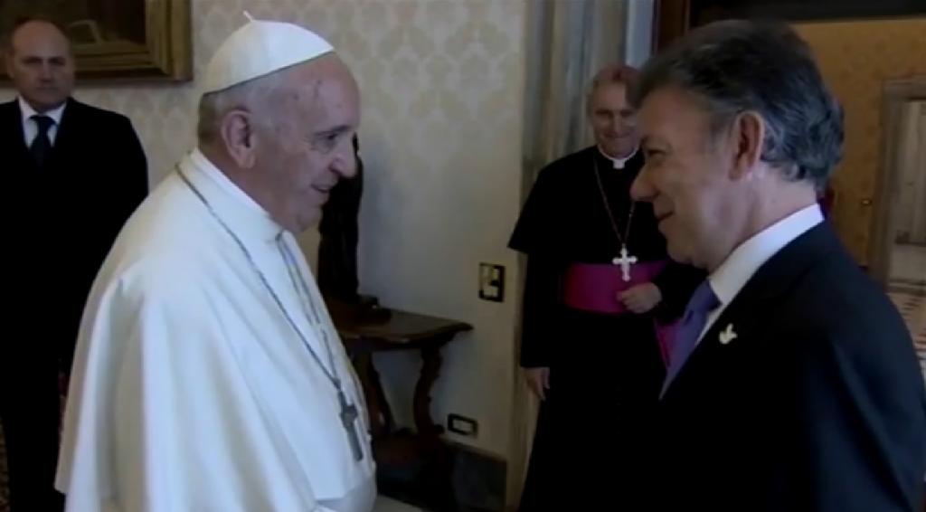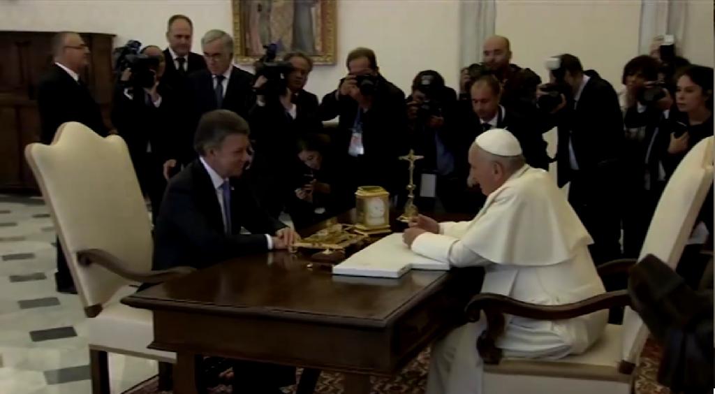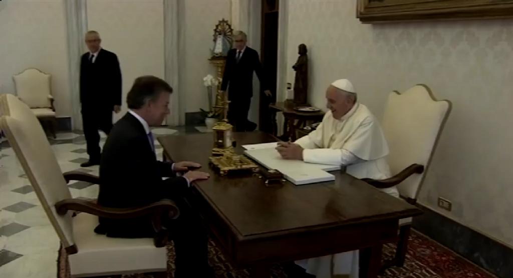 El Presidente de la República de Colombia Juan Manuel Santos visitó El Vaticano para reunirse con el papa Francisco en audiencia privada en el Palacio Apostólico.