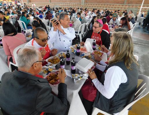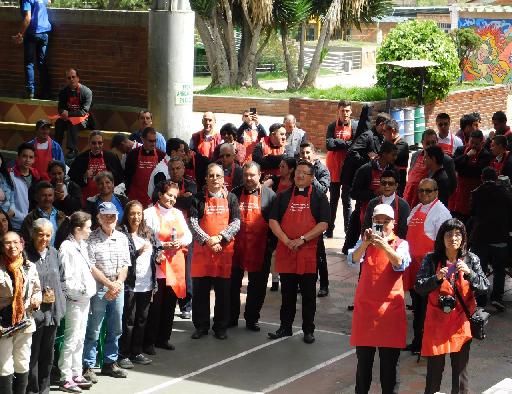 Fueron más de 1.100 personas vulnerables que recibieron un almuerzo. Estuvieron acompañados por monseñor Daniel Falla obispo de Soacha, sacerdotes, seminaristas, religiosas y voluntarios de la Pastoral Social, que en esta ocasión se colocaron el delantal y colaboraron activamente en la Almuerzaton.